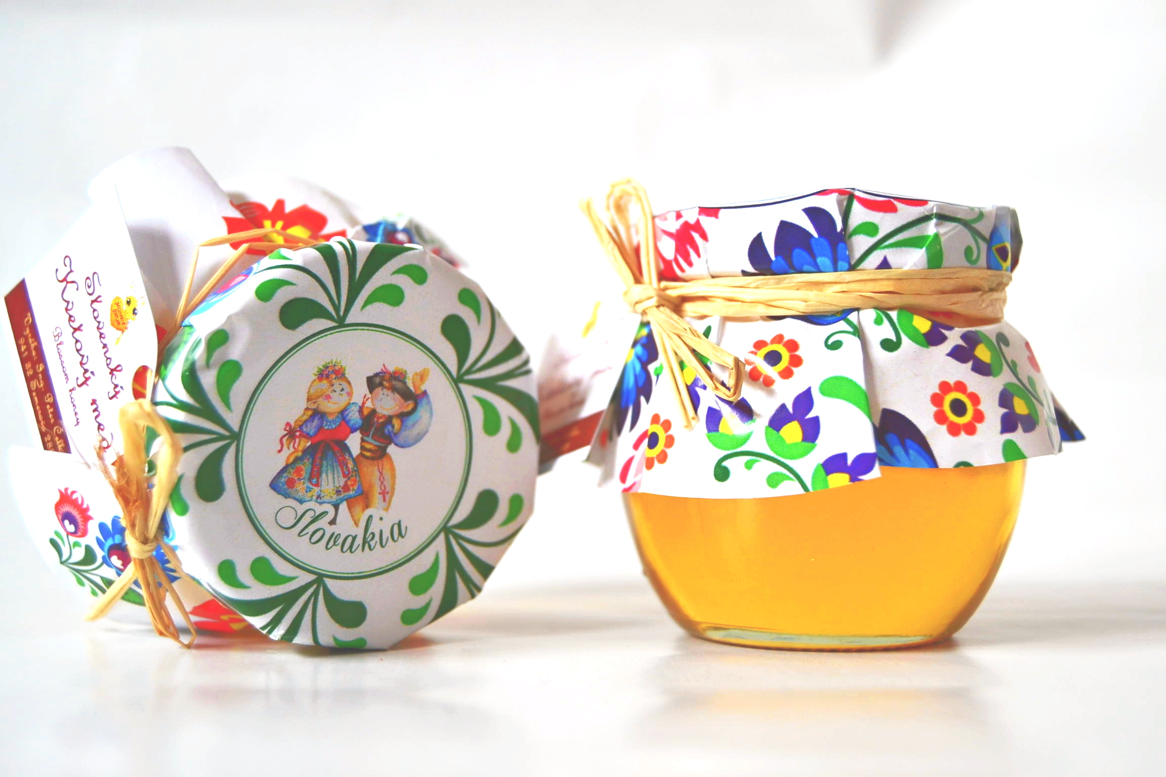 Darčekové balenie medíku v ľudovom štýle, vhodné ako suvenír alebo do darčekových košíkov pre Vašich priateľov.